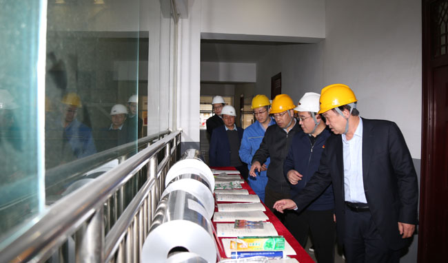 11月28日上午,新安縣新任縣長陳功到萬基控股集團(tuán)調(diào)研,深入萬基鋁加工、鋁業(yè)二公司、石墨公司生產(chǎn)現(xiàn)場,了解企業(yè)生產(chǎn)經(jīng)營、技術(shù)革新、產(chǎn)品開發(fā)、市場開拓及環(huán)保改造項(xiàng)目運(yùn)行狀況。新安縣產(chǎn)業(yè)集聚區(qū)管委會(huì)副主任牛志偉和萬基控股集團(tuán)董事長李躍民、總經(jīng)理郭峰等陪同。