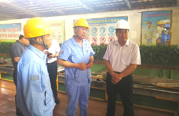 6月22日上午,新安縣縣長(zhǎng)郅書安到萬基控股集團(tuán)墻材公司調(diào)研。集團(tuán)公司總經(jīng)理郭峰陪同。