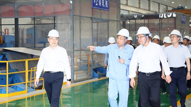 5月7日,嵩縣縣委書記辛俊峰,縣委副書記、縣長任慶鵬帶領(lǐng)產(chǎn)業(yè)觀摩團(tuán)到萬基控股集團(tuán)考察產(chǎn)業(yè)發(fā)展工作。新安縣委書記王智,縣委副書記、縣長崔占科,縣委副書記王曉輝,縣人大常委會主任龐樹軒,縣政協(xié)主席韓少峰,萬基控股集團(tuán)黨委書記、董事長李躍民等陪同。