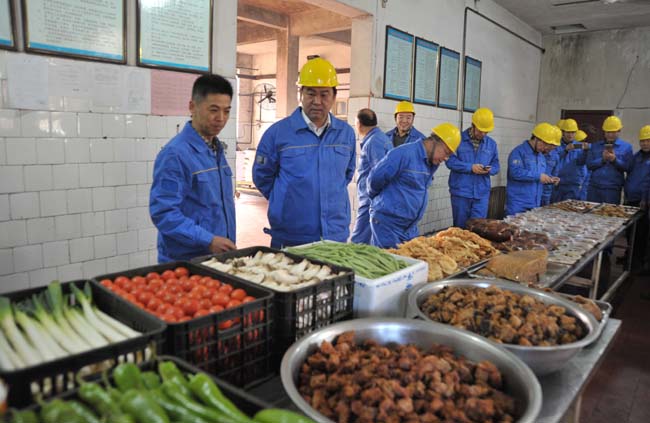 郭峰總經(jīng)理等領(lǐng)導(dǎo)到大板錠車間慰問(wèn)一線員工。