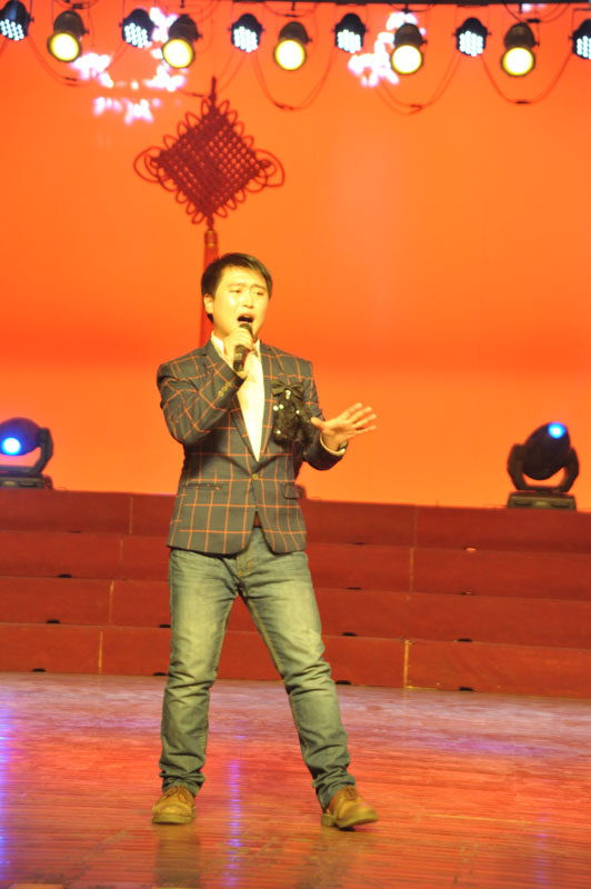 董新表演男聲獨唱《你的眼神》