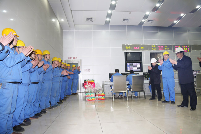 1月26日,縣長郅書安帶領四大班子領導到發(fā)電公司慰問一線員工,公司董事長李躍民、總經理郭峰等陪同。