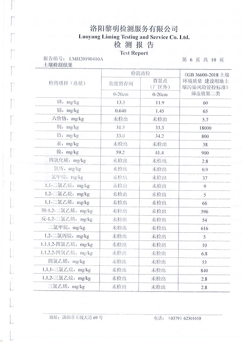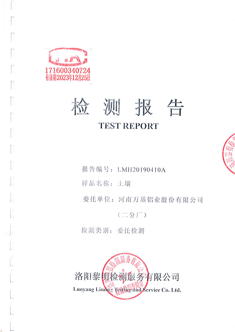 河南萬基鋁業(yè)股份有限公司(二分廠)土壤檢測報告公示