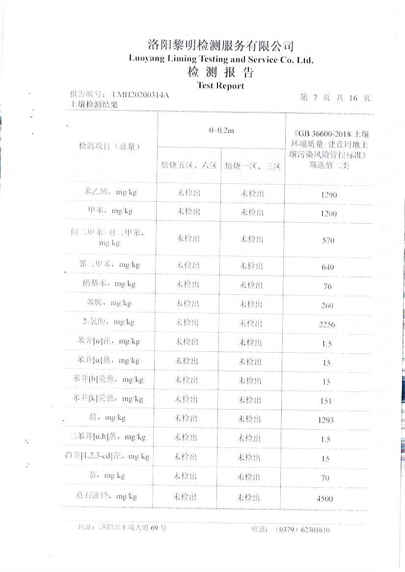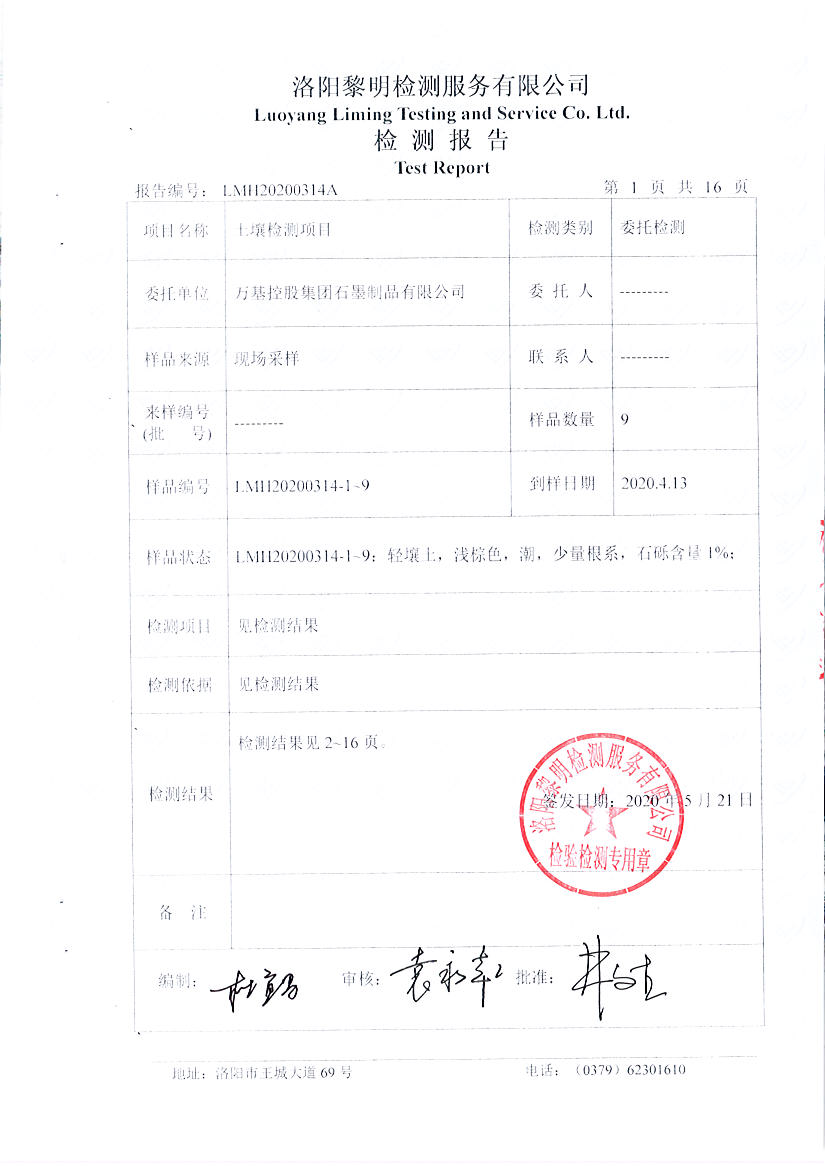 萬基控股集團(tuán)石墨制品有限公司2020土壤自行檢測報(bào)告