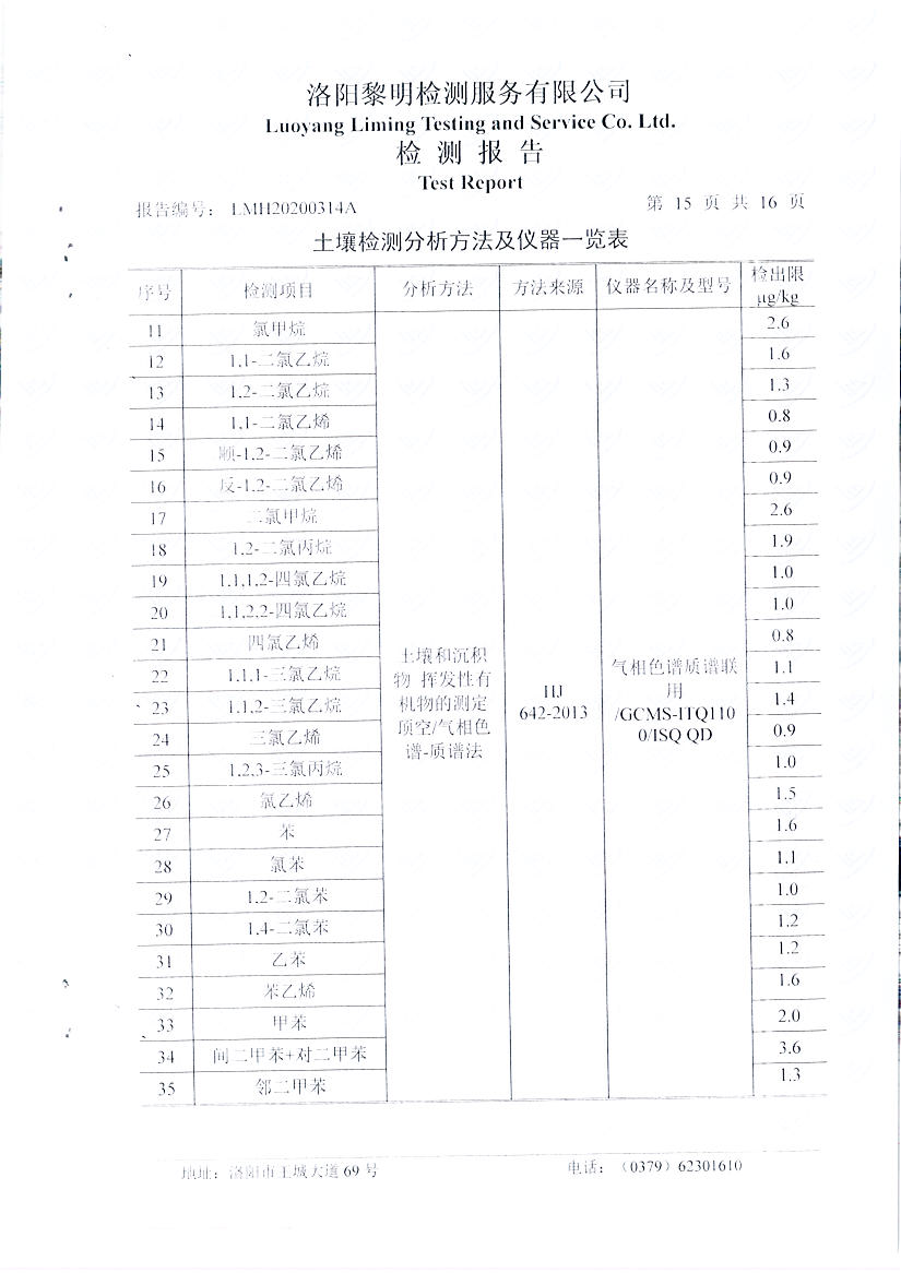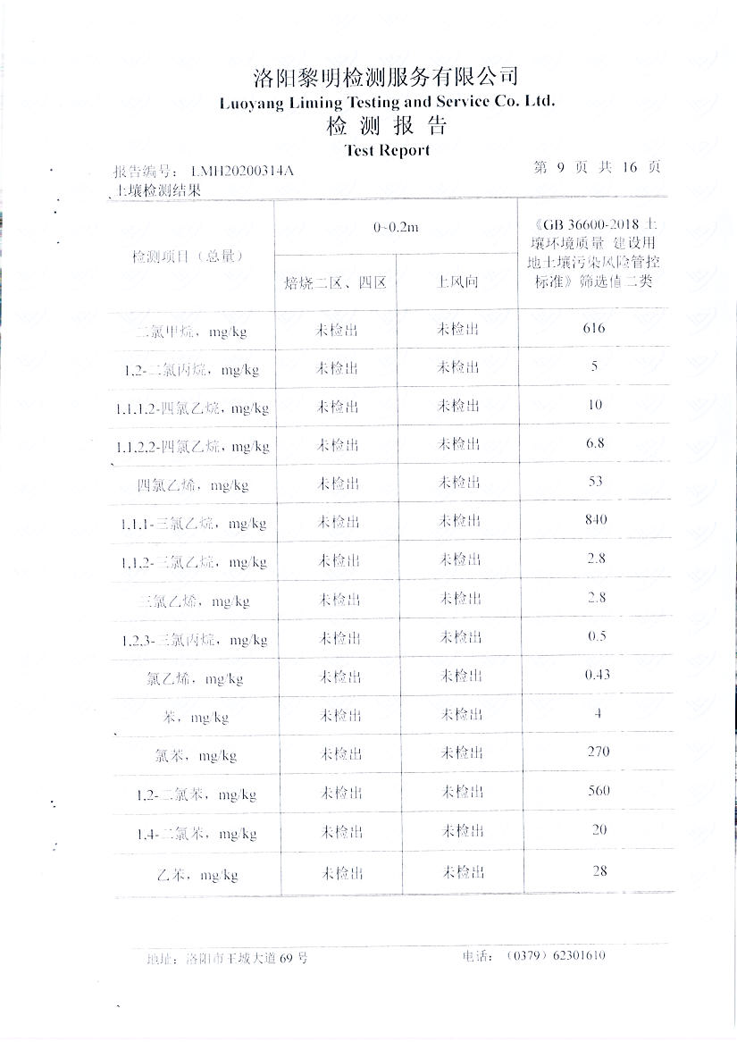 洛陽萬基鋁加工有限公司2019年土壤自行檢測方案
