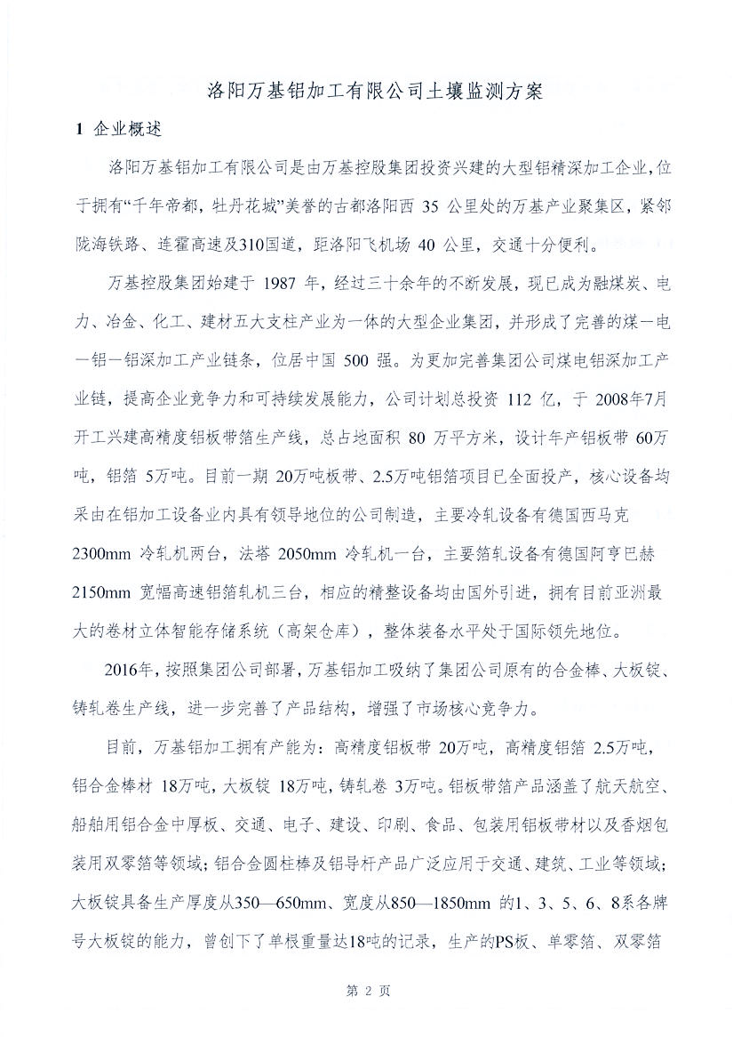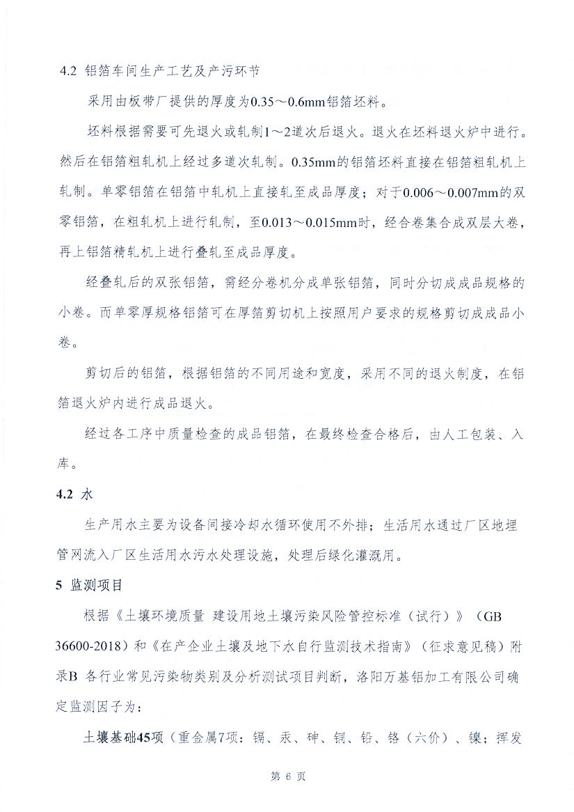 洛陽萬基鋁加工有限公司2020土壤自行監(jiān)測(cè)方案