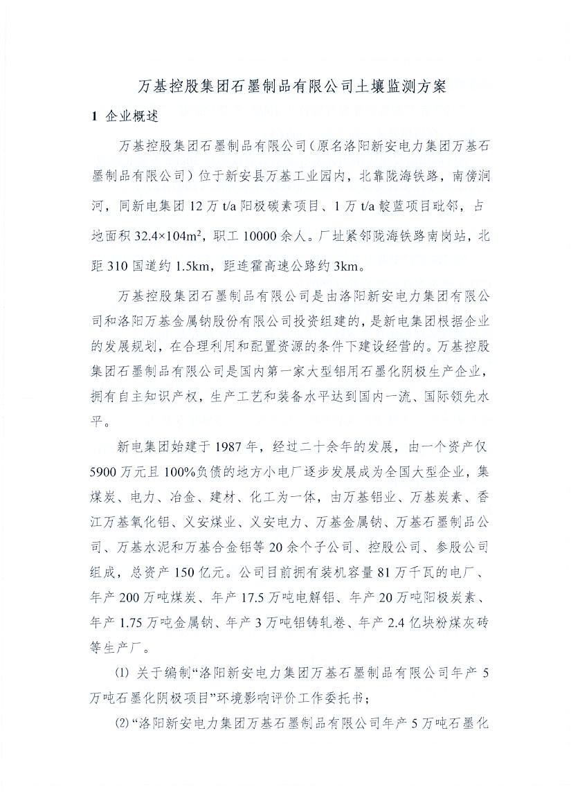 萬基控股集團(tuán)石墨制品有限公司2020土壤自行監(jiān)測(cè)方案